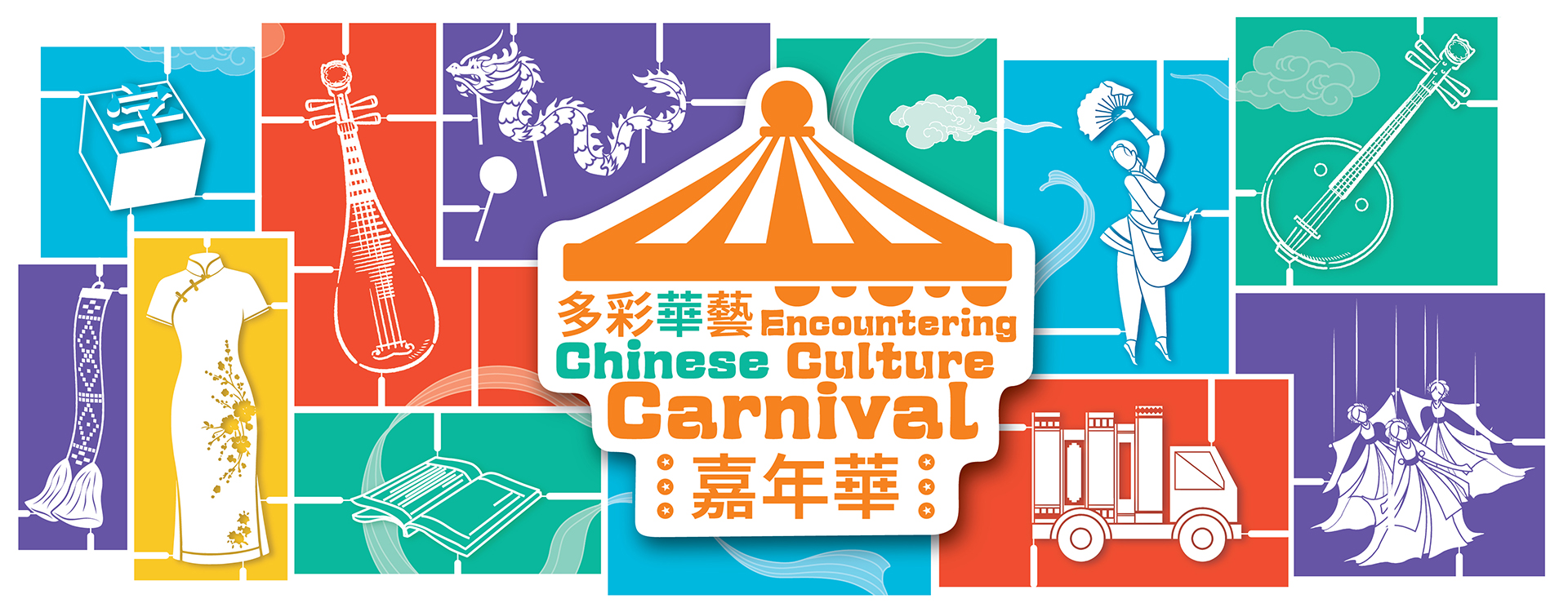 Following the ideals of the inaugural carnival, we advance further to engage with the community and reach out to the public. The carnival will be held at Sha Tin Town Hall and New Town Plaza, where various programmes will be presented, including stage performance highlights, “Vibrant ICH” performances and booth activities, “Mobile ICH”, “Library-on-Wheels”, Chinese music performances and exhibitions, inviting the public to experience the beauty of Chinese culture together.